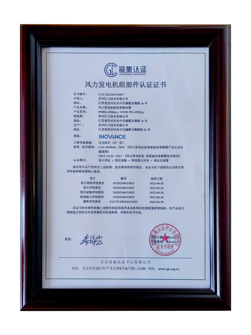 匯川技術(shù)榮獲“風(fēng)力發(fā)電機組部件認(rèn)證證書”